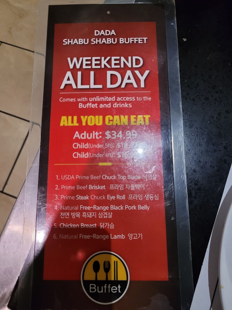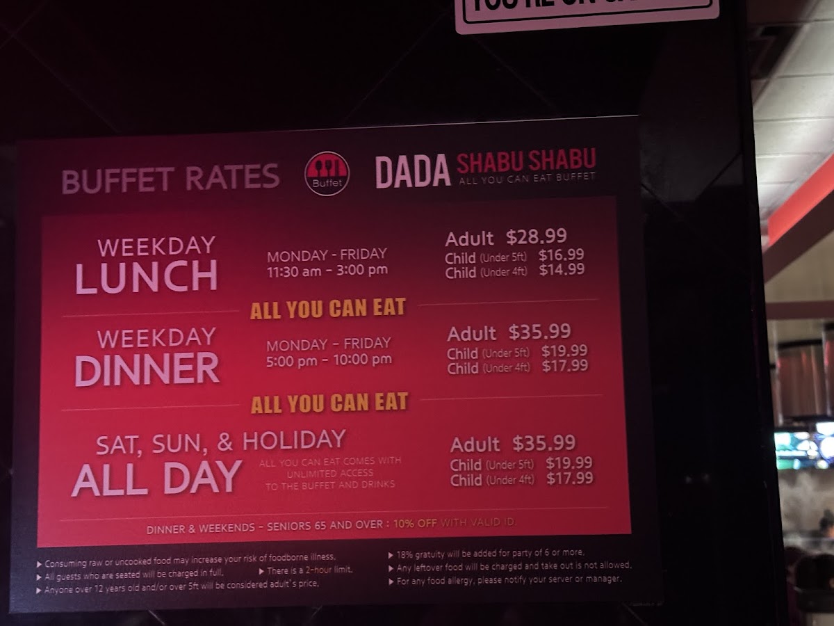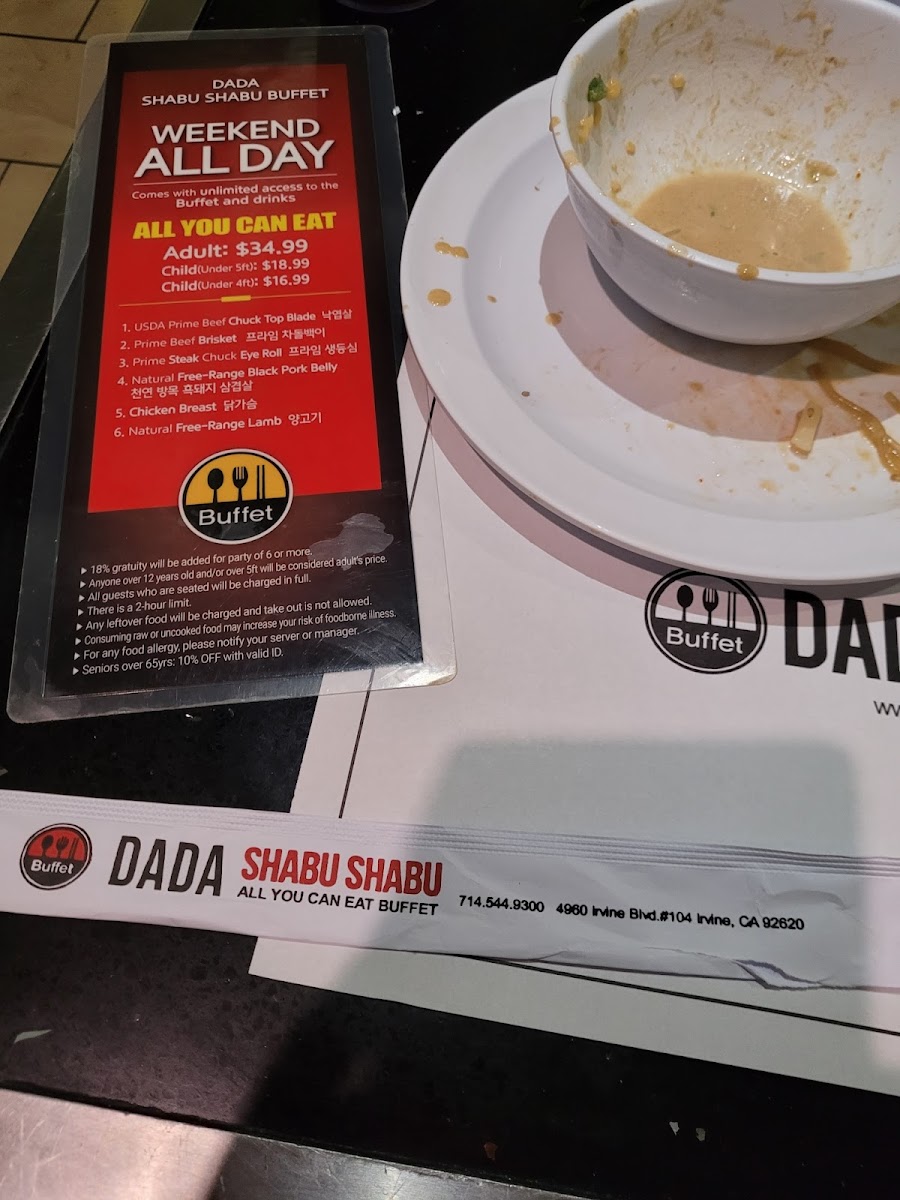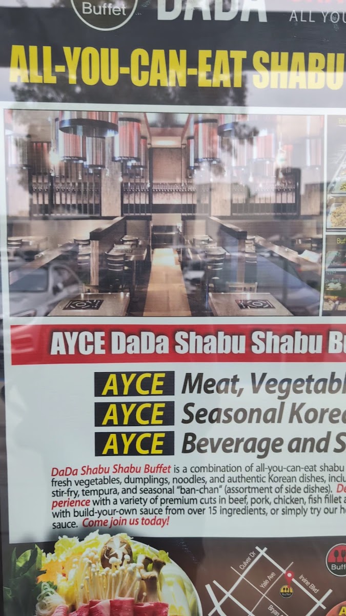 Welcome to Dada Shabu Shabu, a must-visit dining spot located at 4960 Irvine Blvd, Irvine, CA. This all-you-can-eat (AYCE) haven celebrates the art of Shabu Shabu, showcasing an impressive array of ingredients, from sizzling meats to vibrant vegetables.